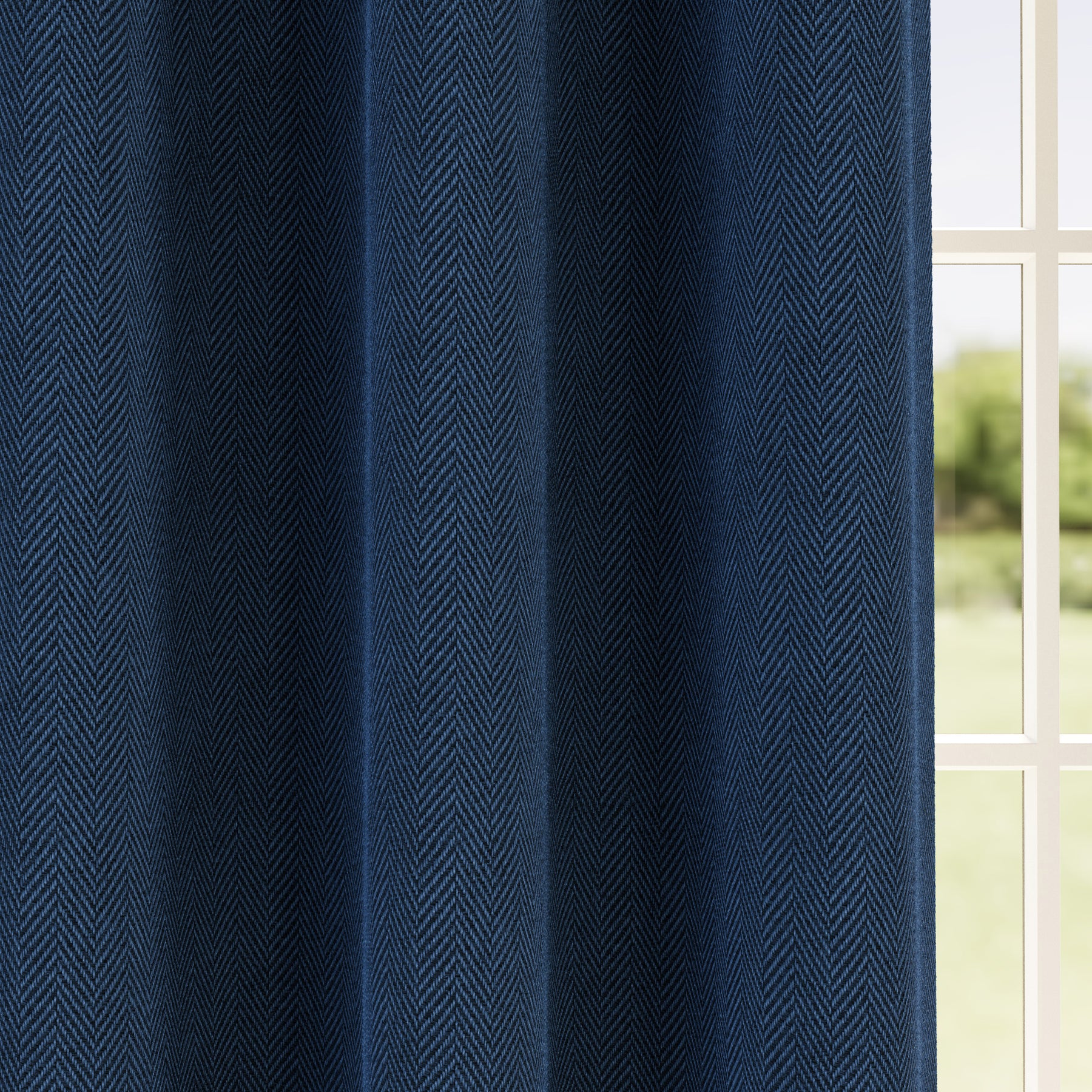Chester Herringbone Ready Made Blackout Eyelet Curtains Navy (DHD)