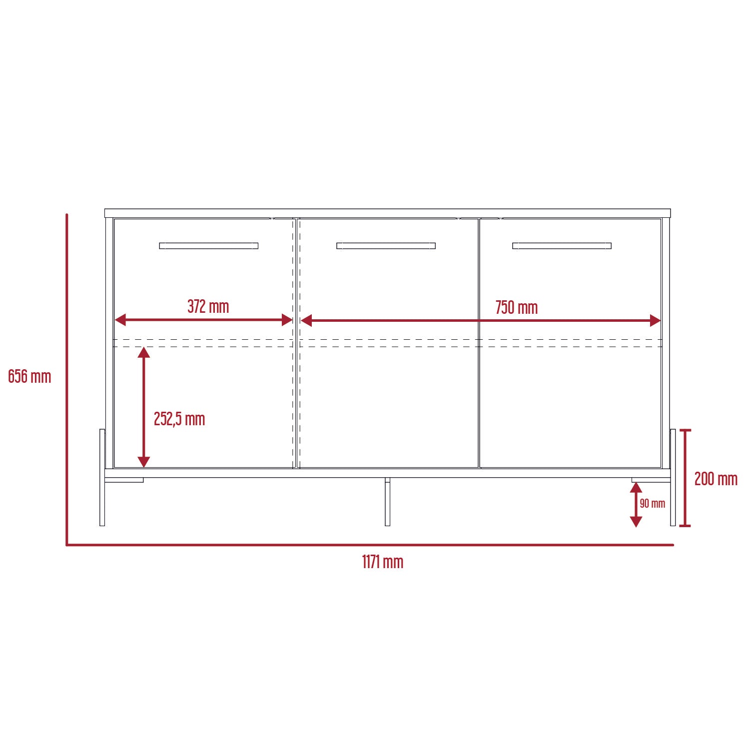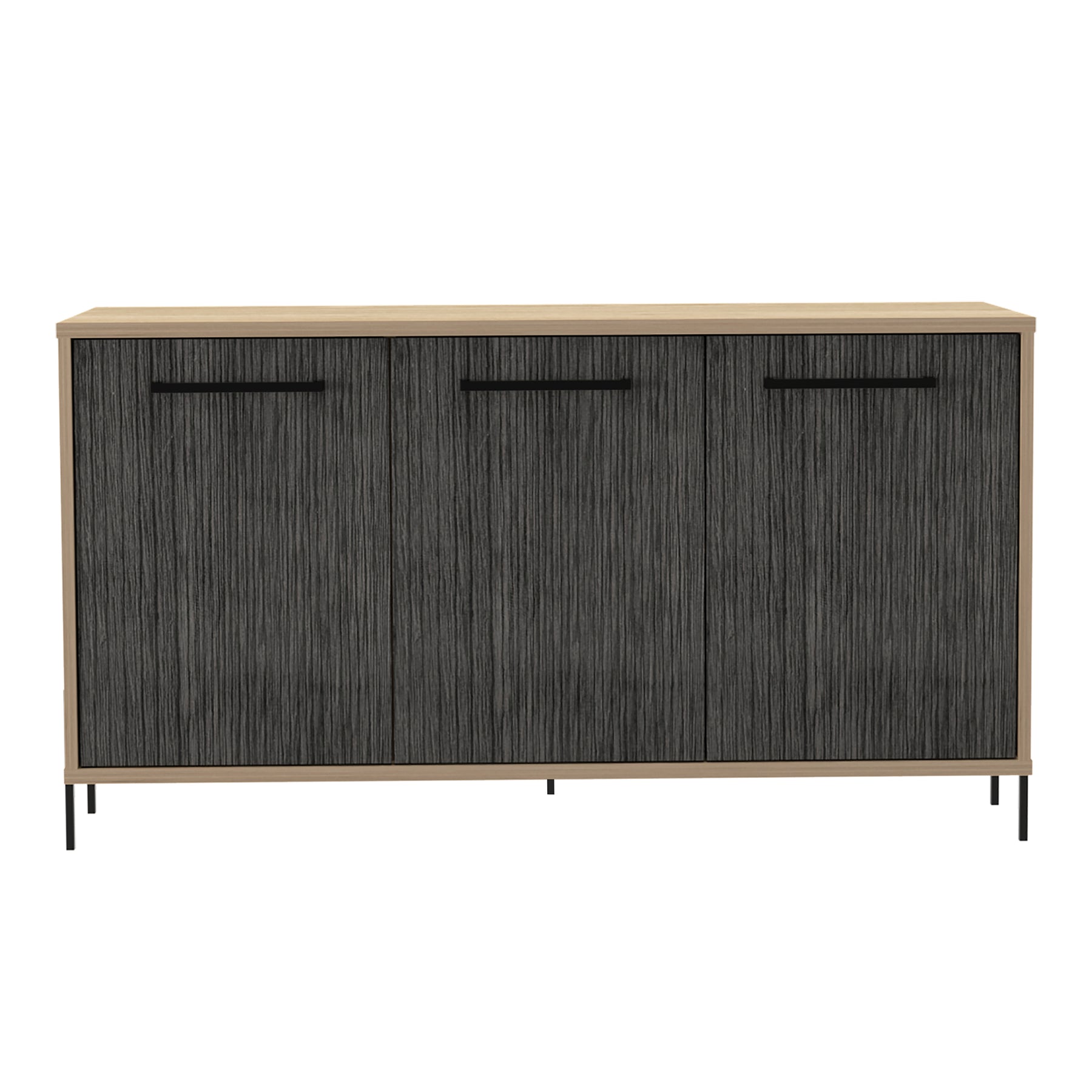 A stylish and practical sideboard that offers plenty of storage space. Made in an easy to clean, hardwearing washed oak and carbon grey oak effect melamine finish with real metal hardware. W119.7 x D39.3 x H65.6 cm