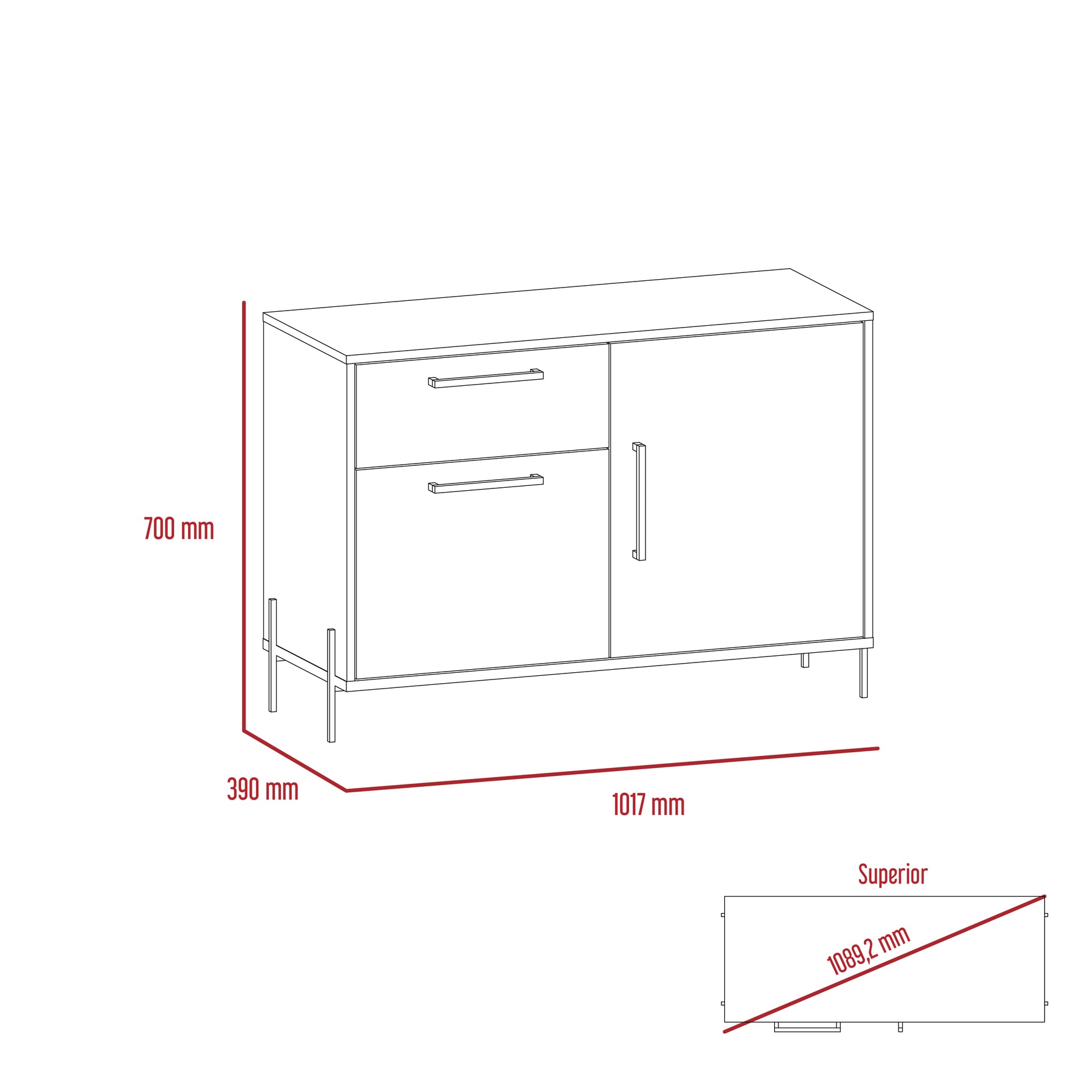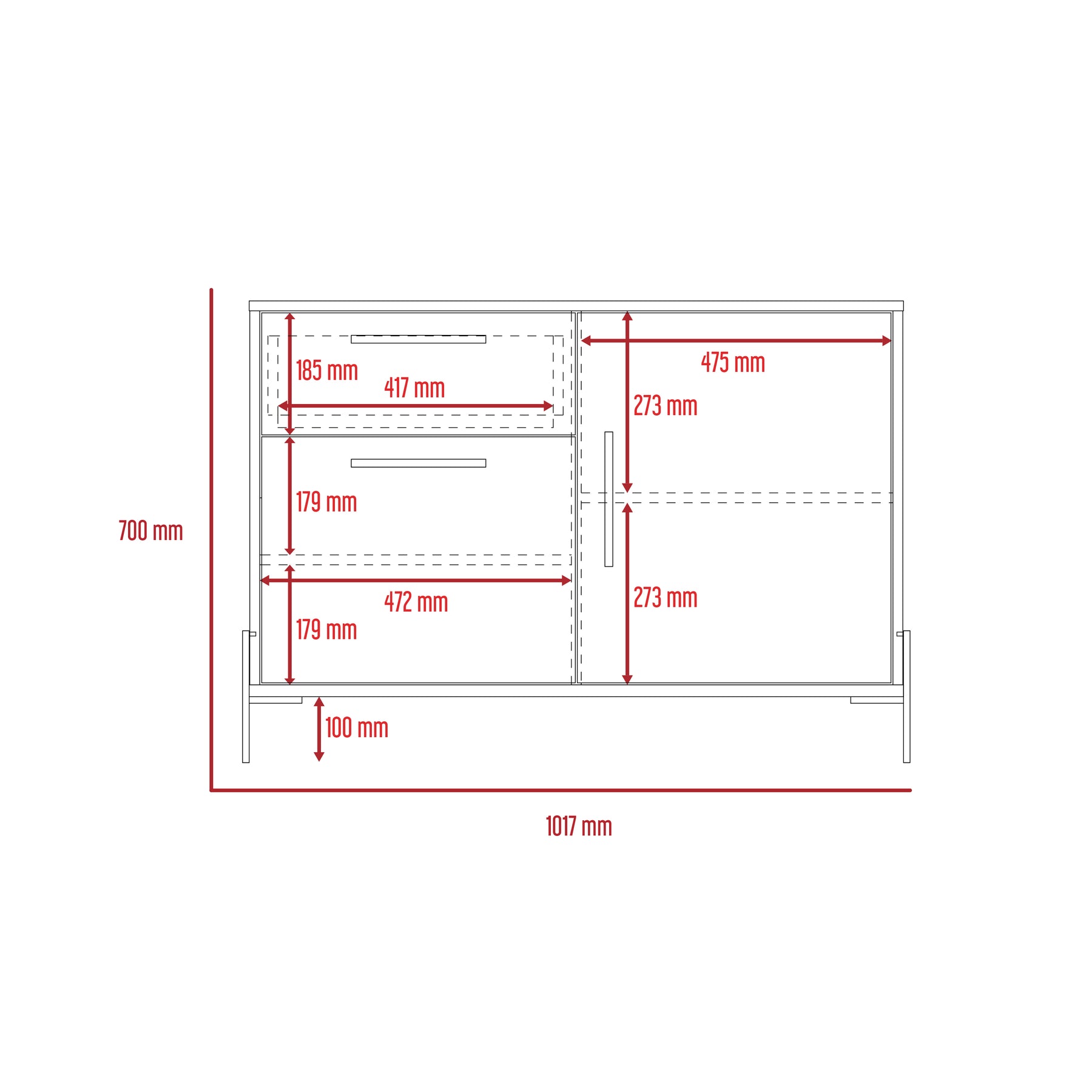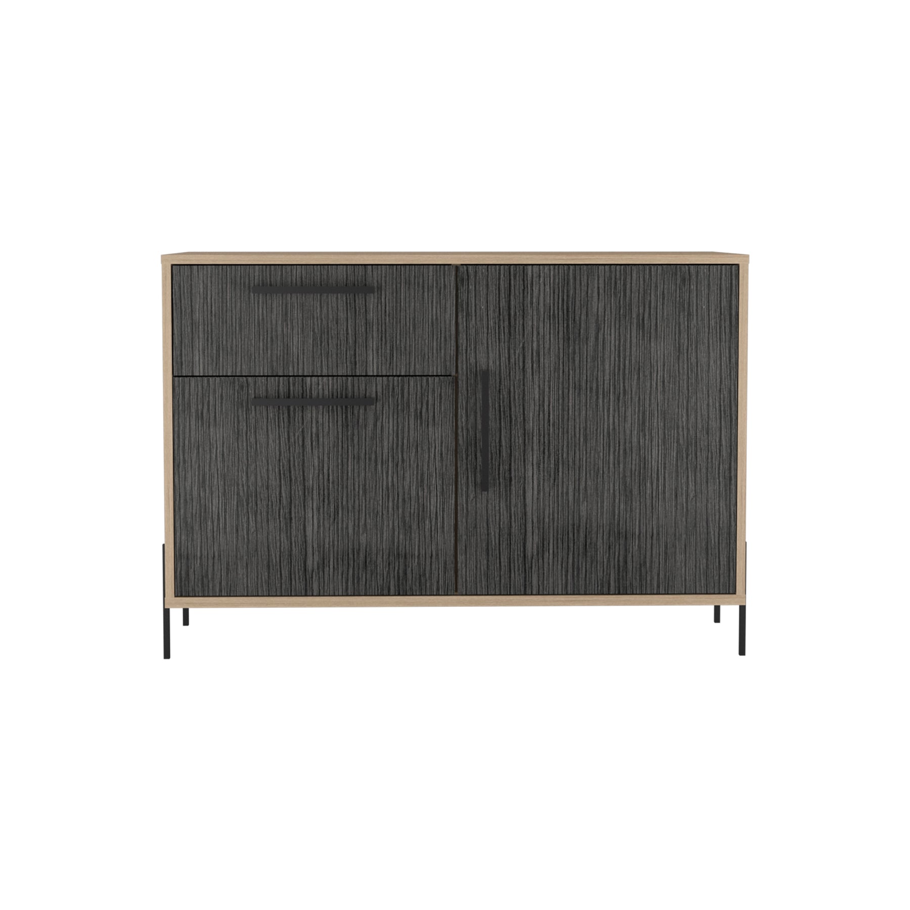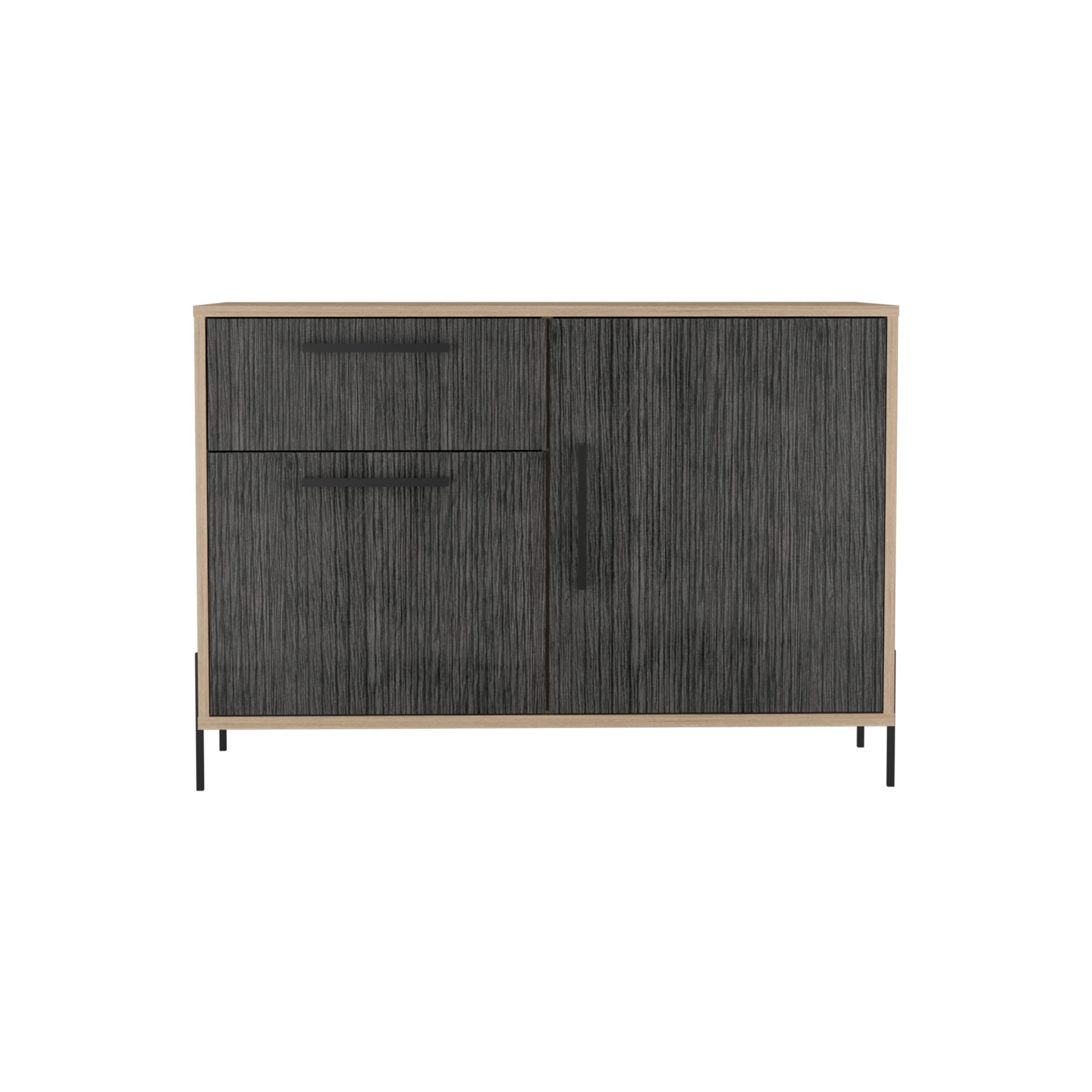 A compact sideboard with plenty of cupboard and drawer space. Made in an easy to clean, hardwearing washed oak and carbon grey oak effect melamine finish with real metal hardware. W101.7 x D39 x H70 cm