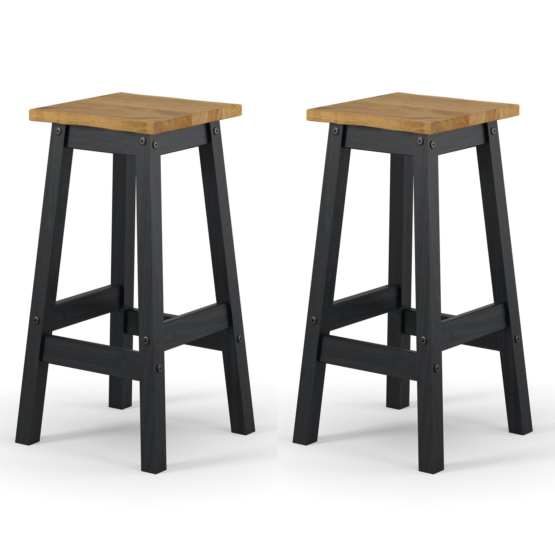 Corona Black Live Edge High Breakfast Stools (Pair) Black Antique Waxed Pine (Self Assembly) (DHD)