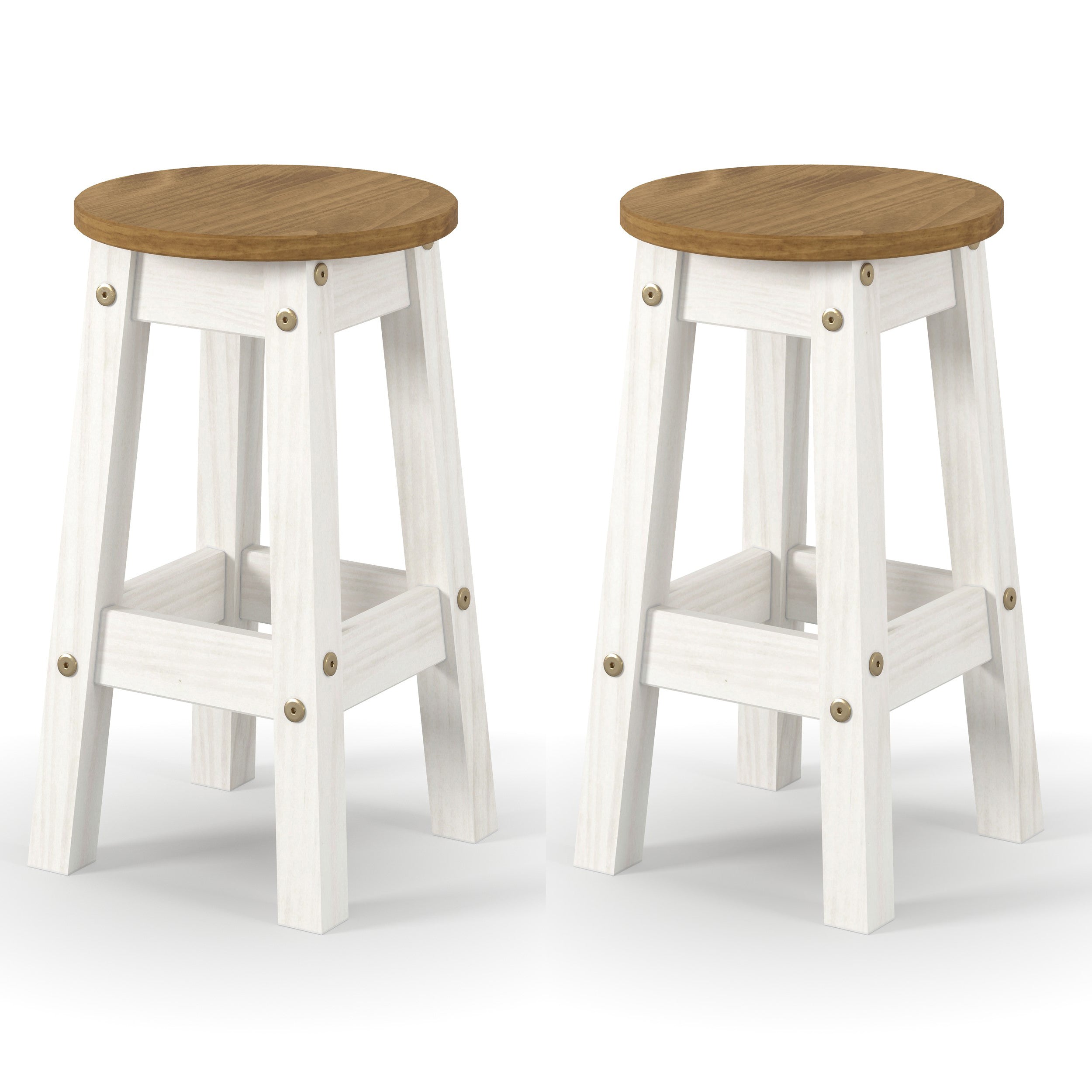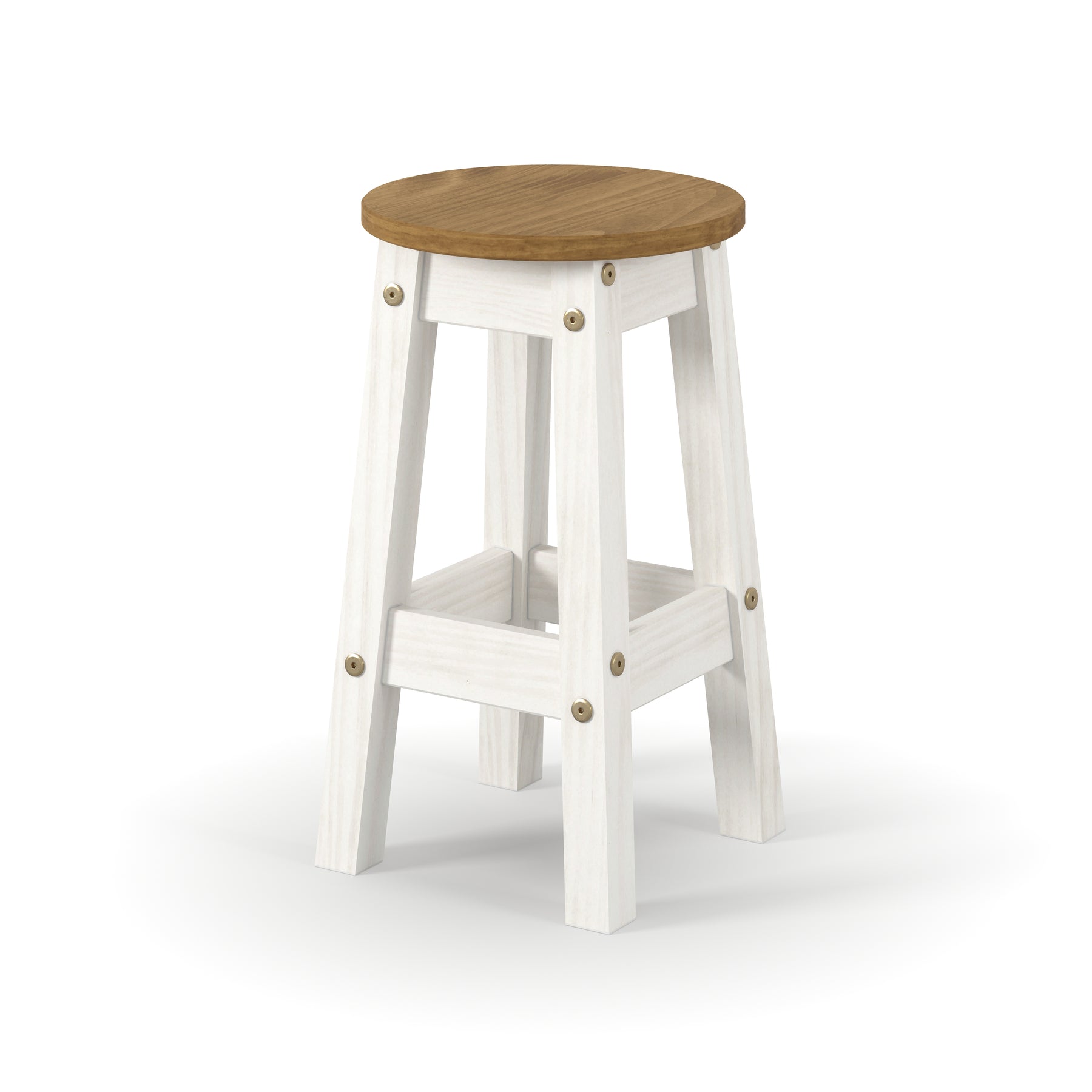A pair of low breakfast stools made from responsibly sourced timber and finished in a contrasting white wash wax and antique wax providing a fresh, modern look to a classic design. Easy to build, easy to clean and easy on the eye. Suitable on their own or as additional seats in our matching breakfast bar sets. W32 x D32 x H50.8 cm