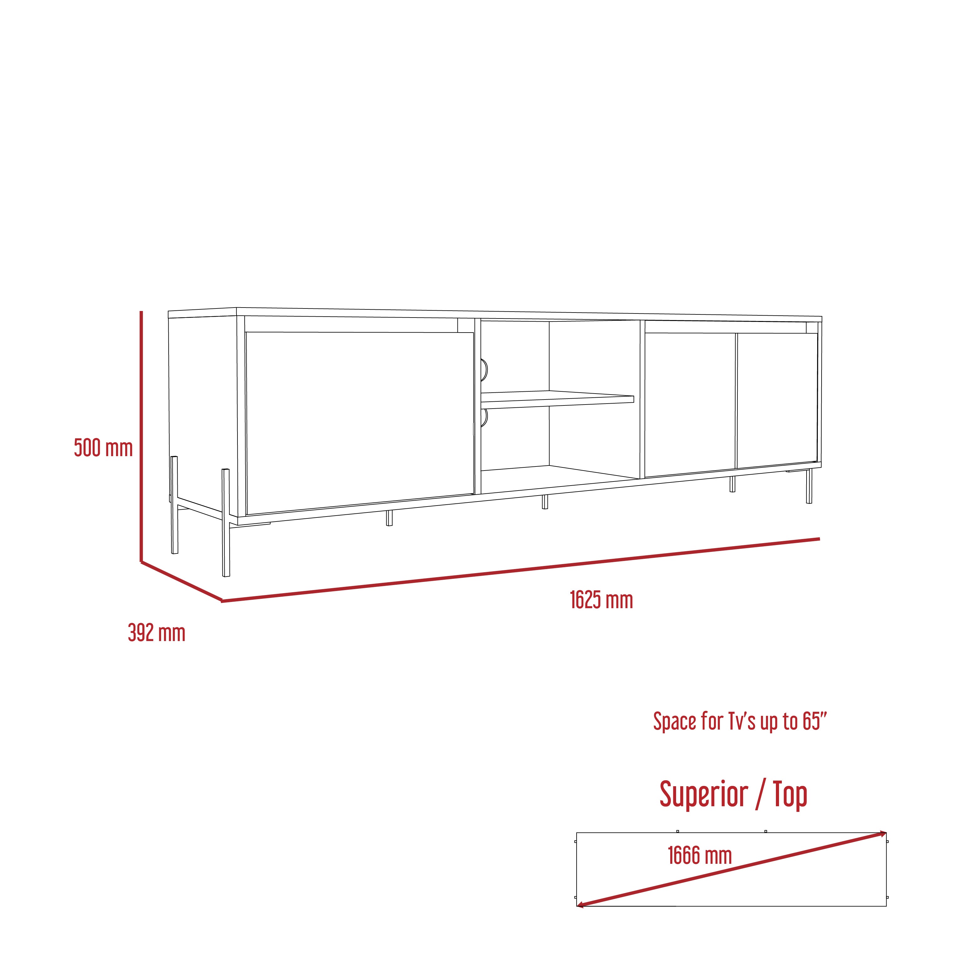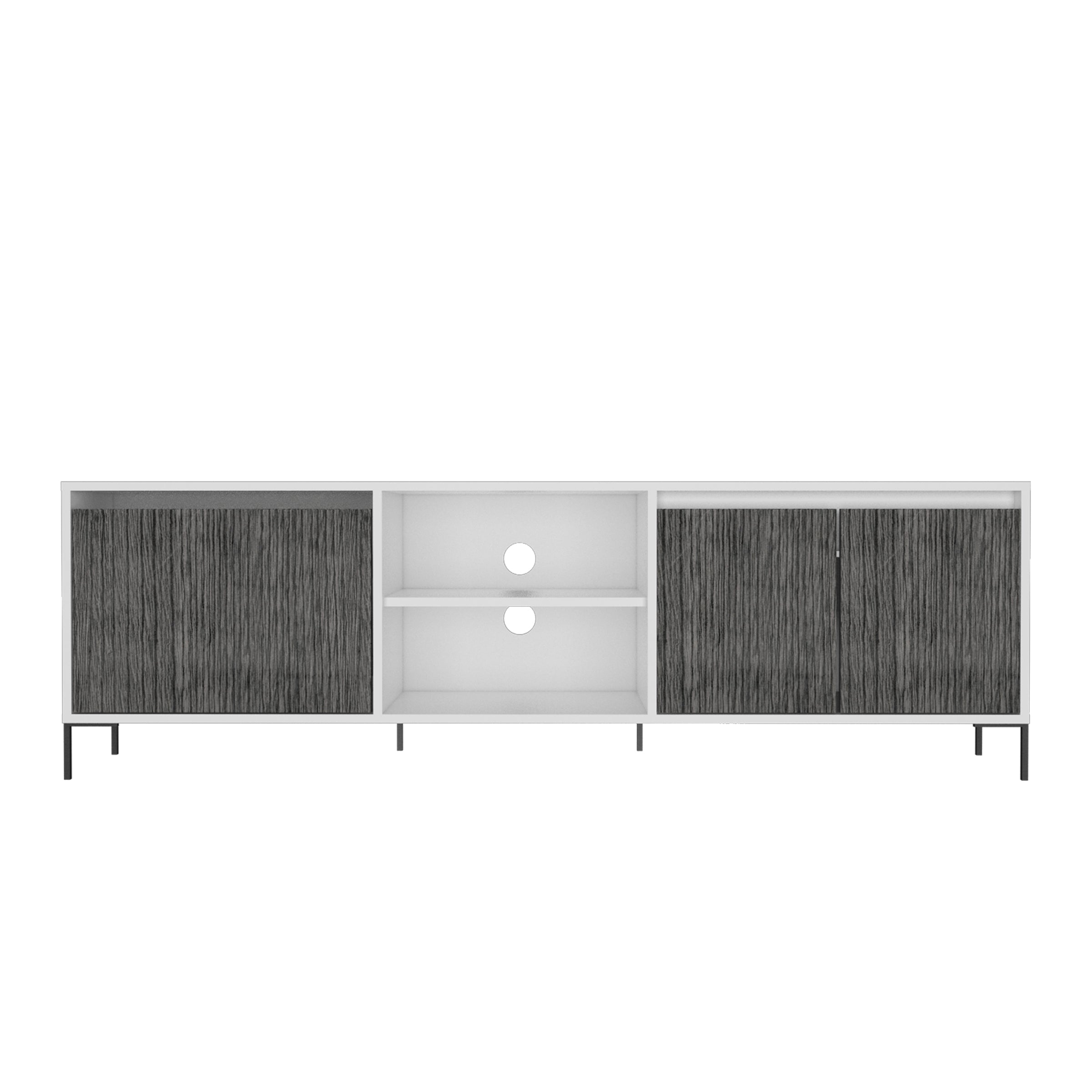 Big enough to accommodate most TV,s this practical unit features open space and enclosed cupboards with a hidden drawer behind doors with concealed handles. Made in an easy to clean, hardwearing white and carbon grey oak effect melamine finish with real metal hardware. W162.5 x D39.2 x H55 cm