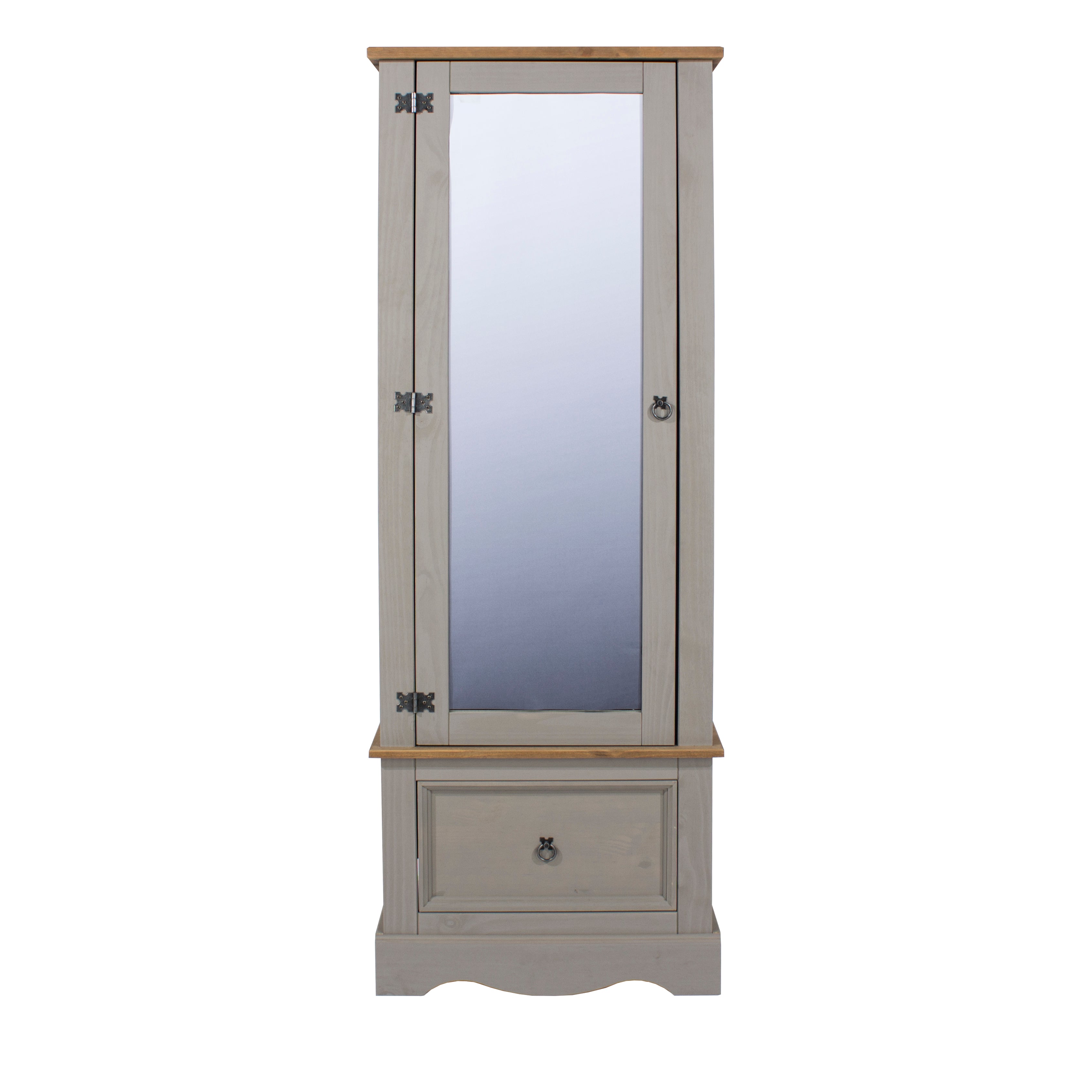 Combing drawer storage, hanging space and a 3/4 length mirror all into one beautiful armoire styled wardrobe finished in antique and grey wax with gunmetal coloured hardware. W66 x D55.5 x H187.7 cm