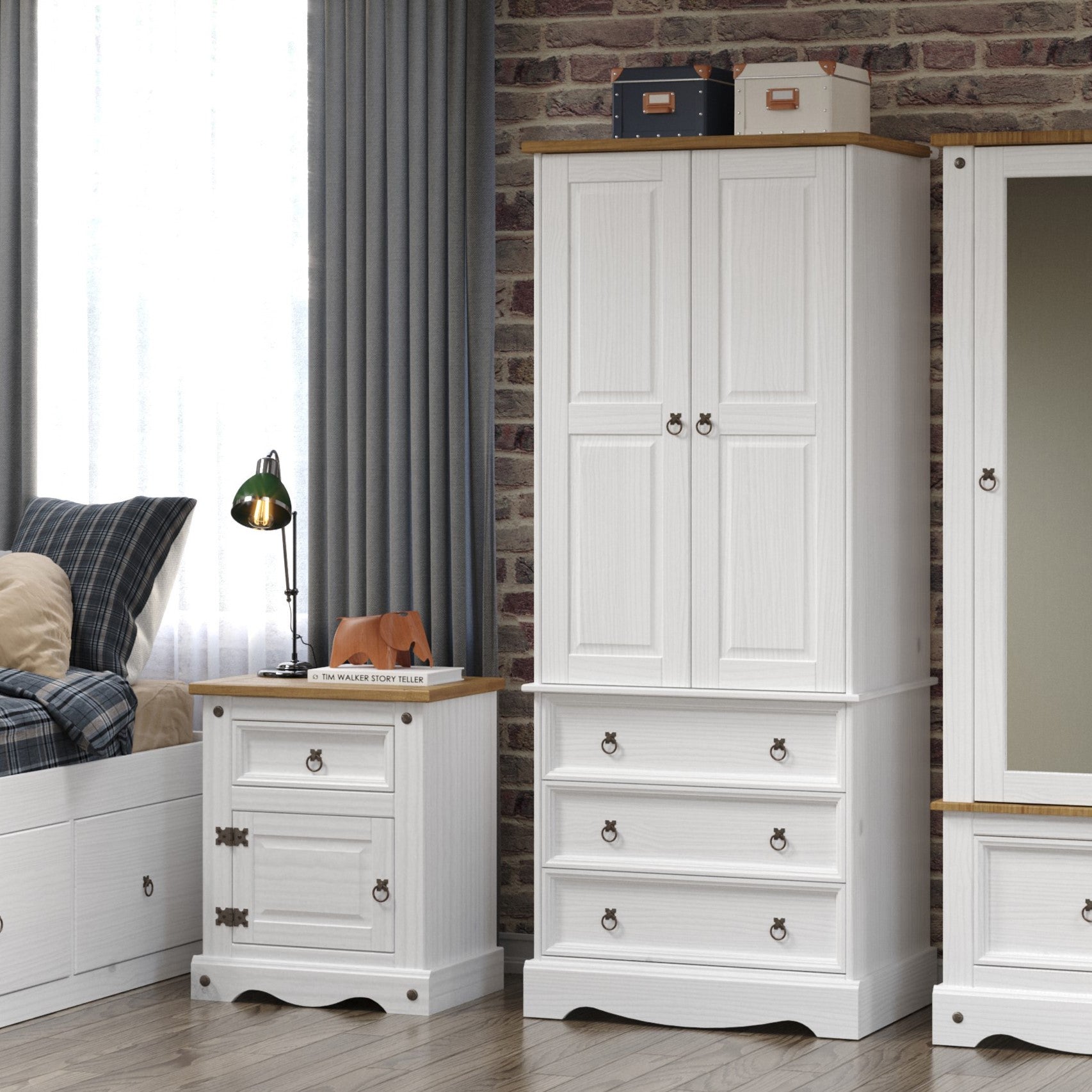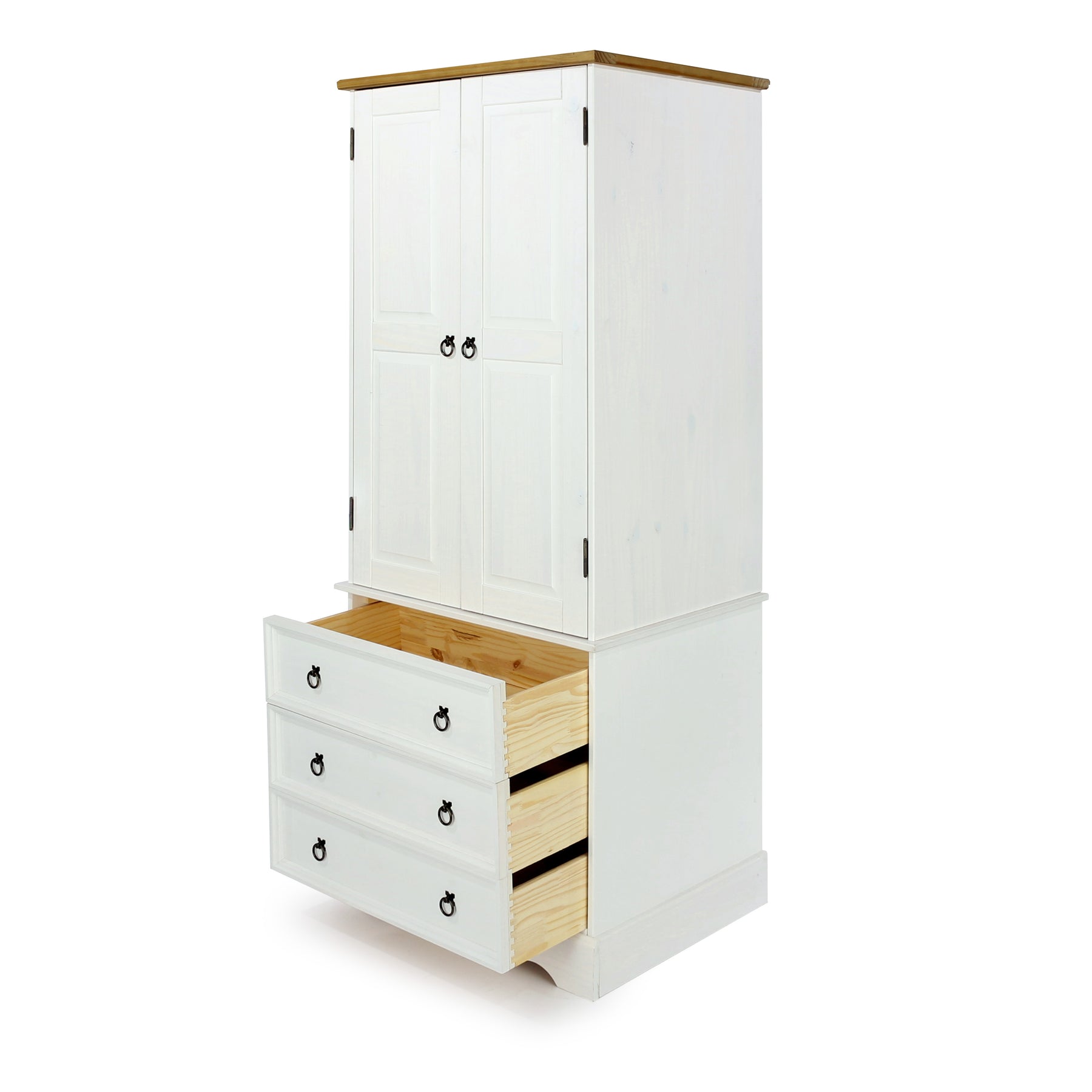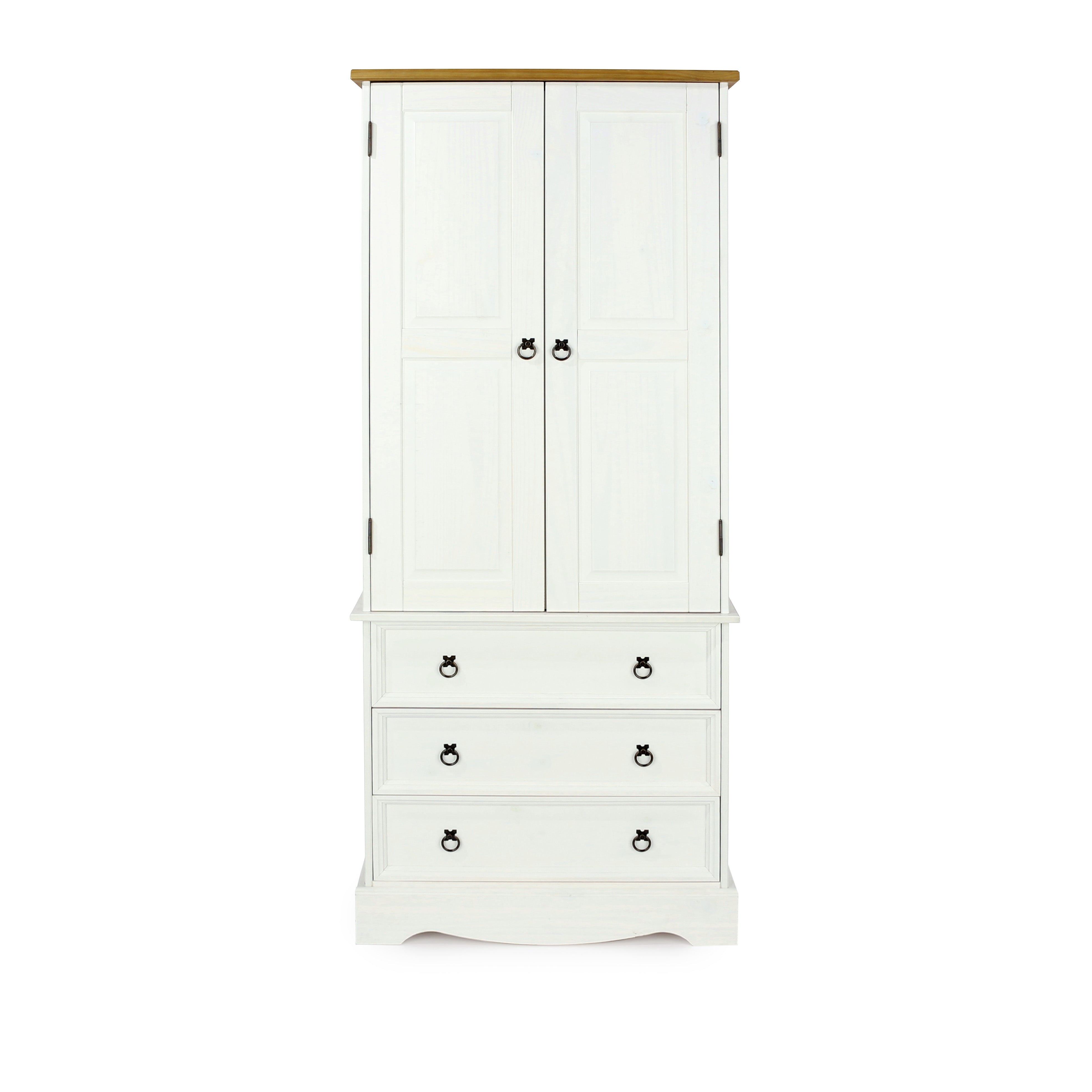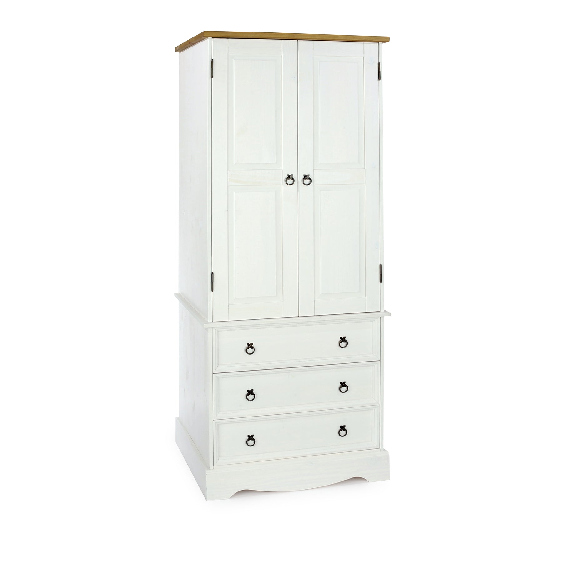 Corona White 2 Door, 3 Drawer Wardrobe White Wax Antique Waxed Pine (Self Assembly) (DHD)
