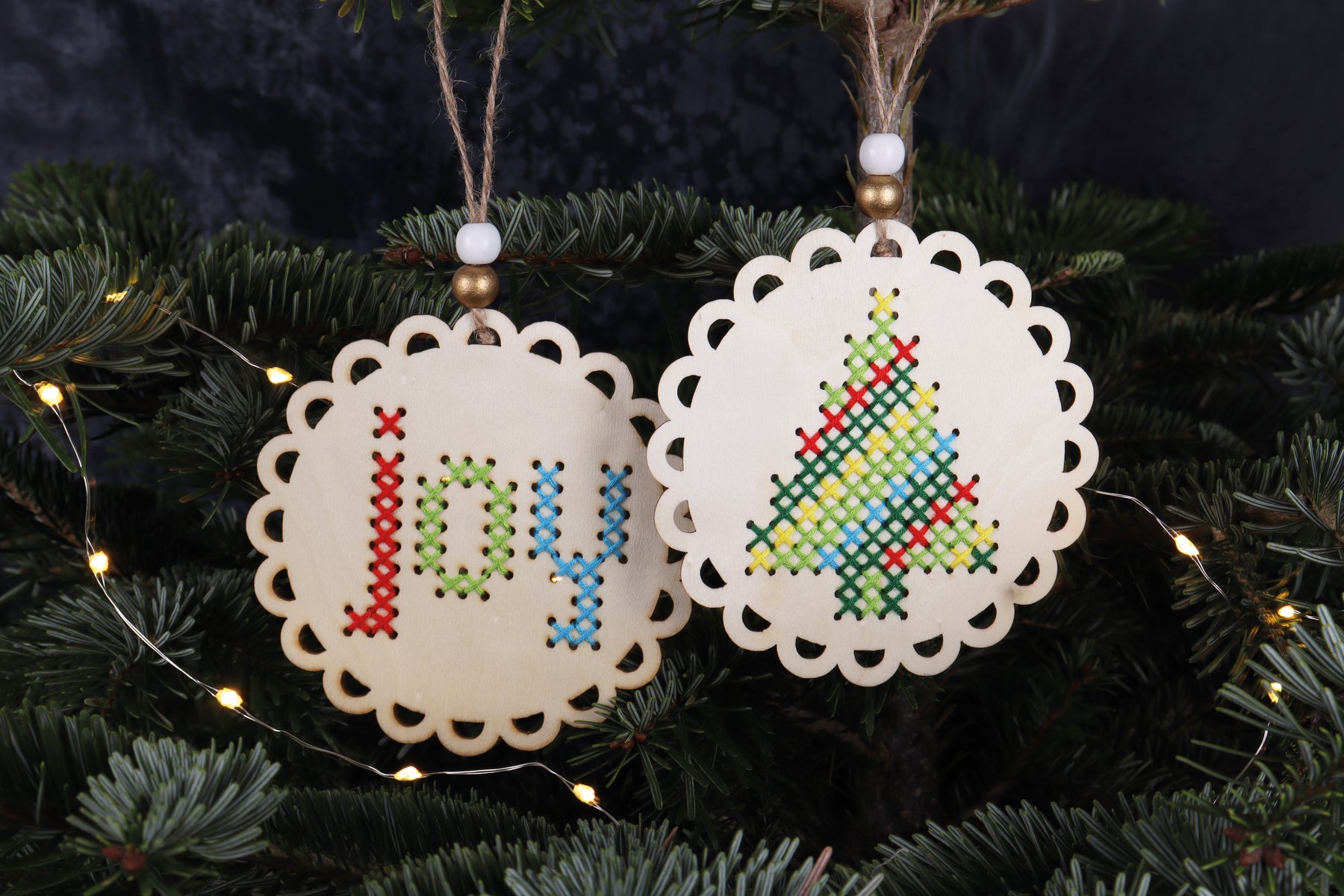 - These pre-punched wooden shapes are great for cross stitching and turning into decorations.
