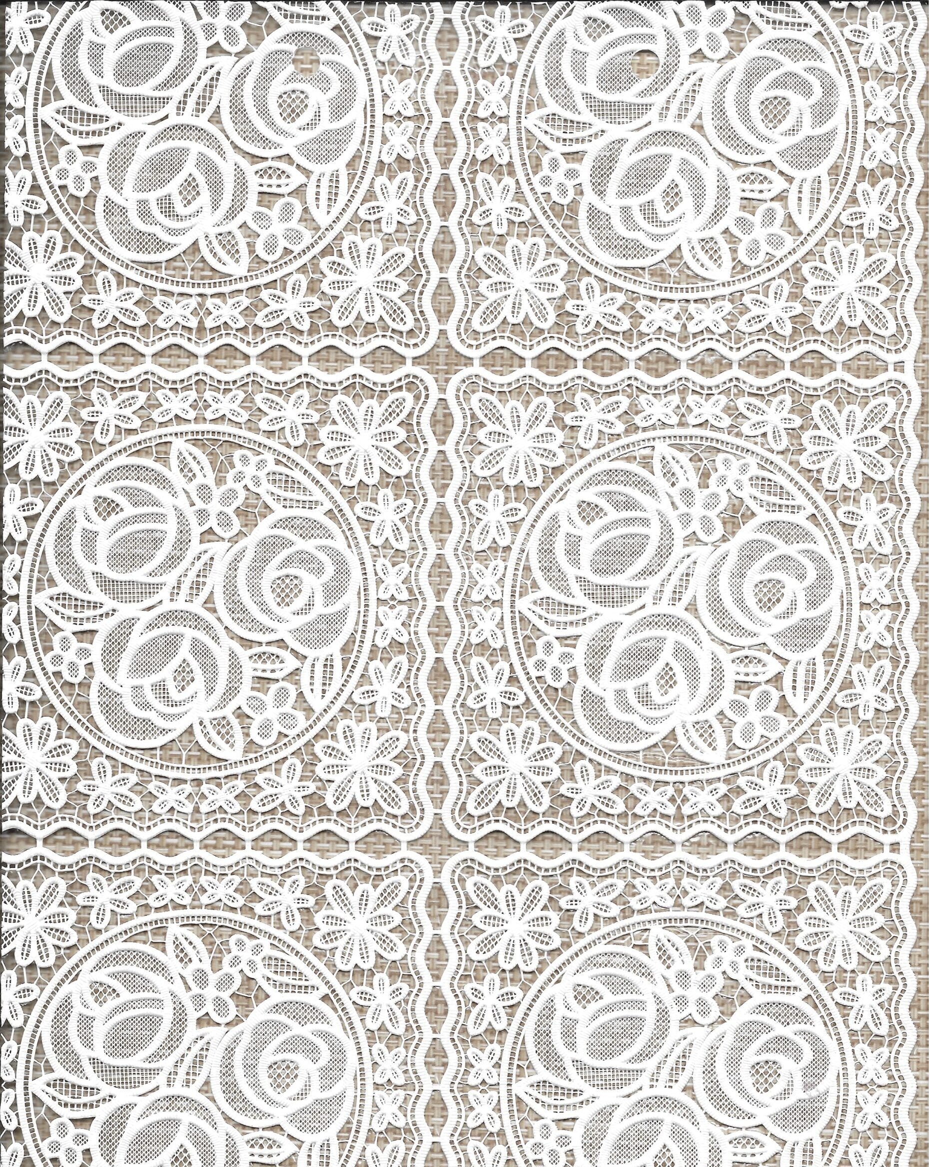 Wipeclean Vinyl Lace Table Cloth 140cm/54in By The Metre 3090A Dina White