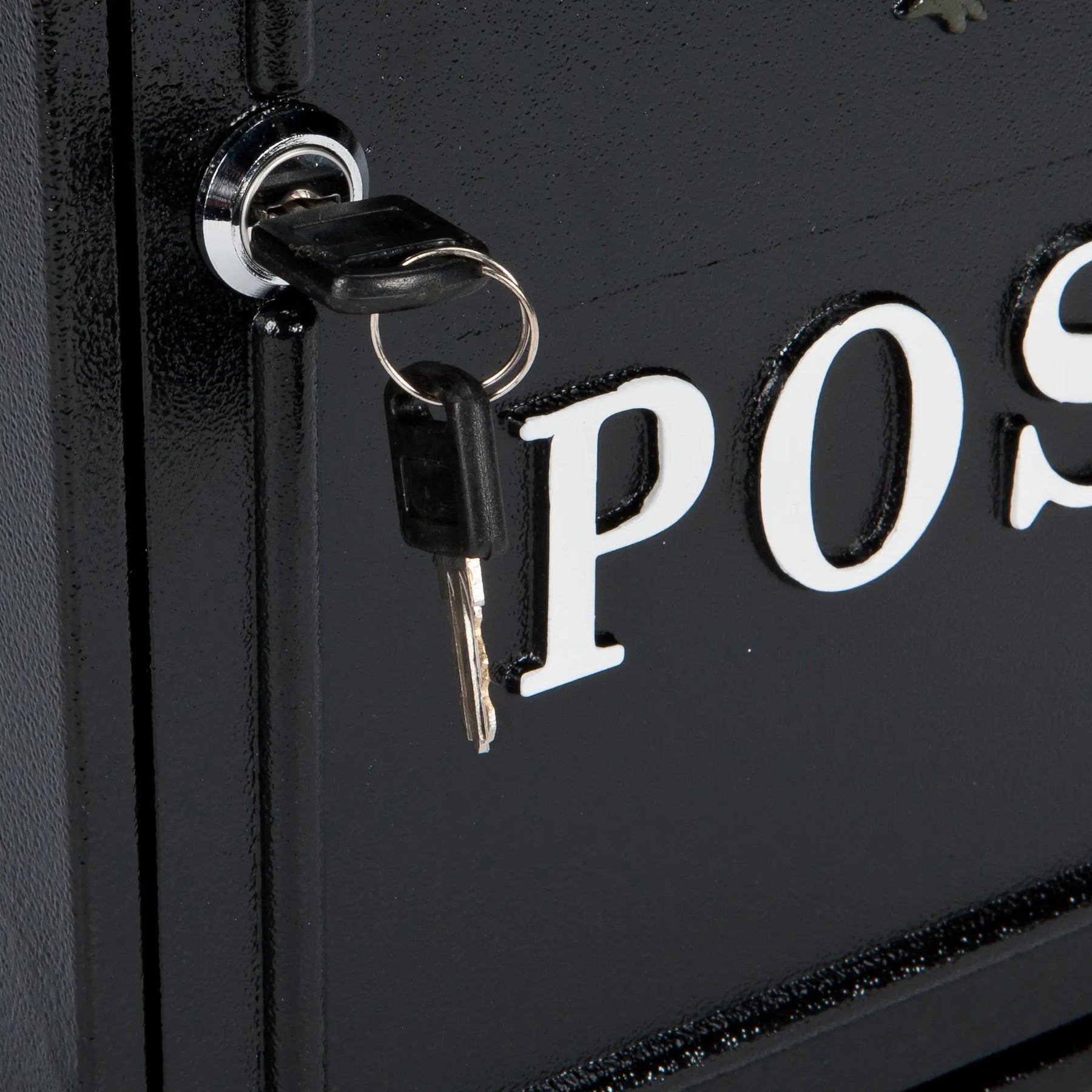 This elegant black wall-mounted post box combines classic style with practical function. Featuring a bold "POST" inscription and a decorative horse, it adds a traditional touch to any home exterior. Built from cast aluminium with a lockable front door, it keeps your mail secure and protected from the elements. Ideal for residential or small business use.  This wall-mounted post box is corrosion and rust-resistant with an embossed Celtic symbol design. This post box can hold letters and A4-sized packages.