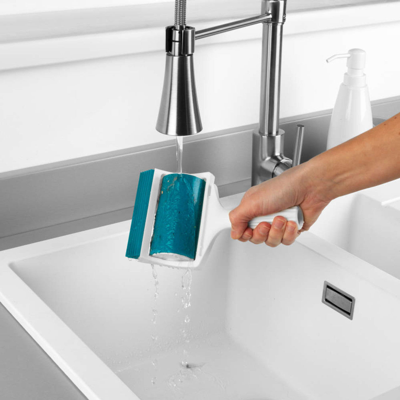 - This portable roller also features a built-in squeegee which is perfect for pet hair, fluff, and lint removal on various surfaces.