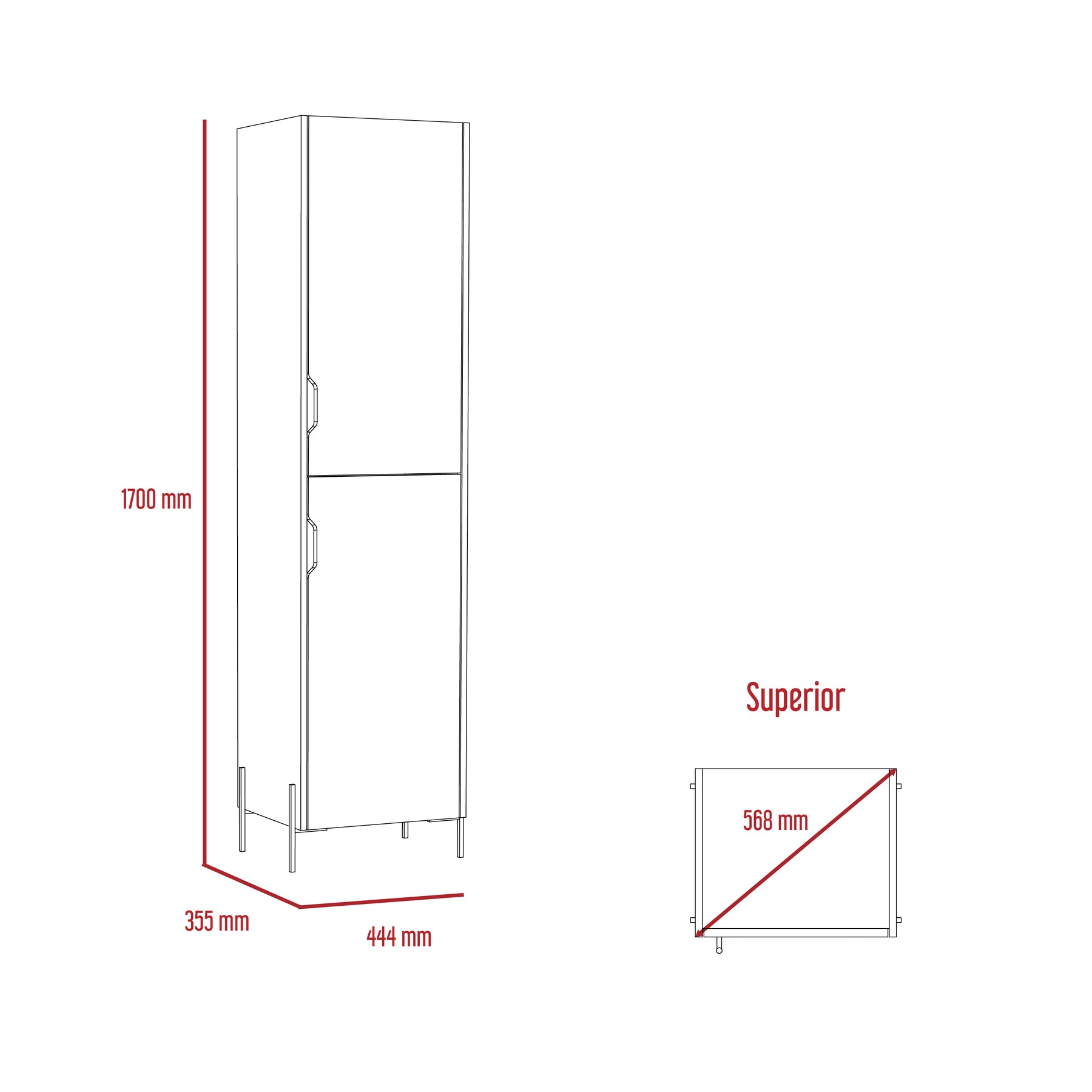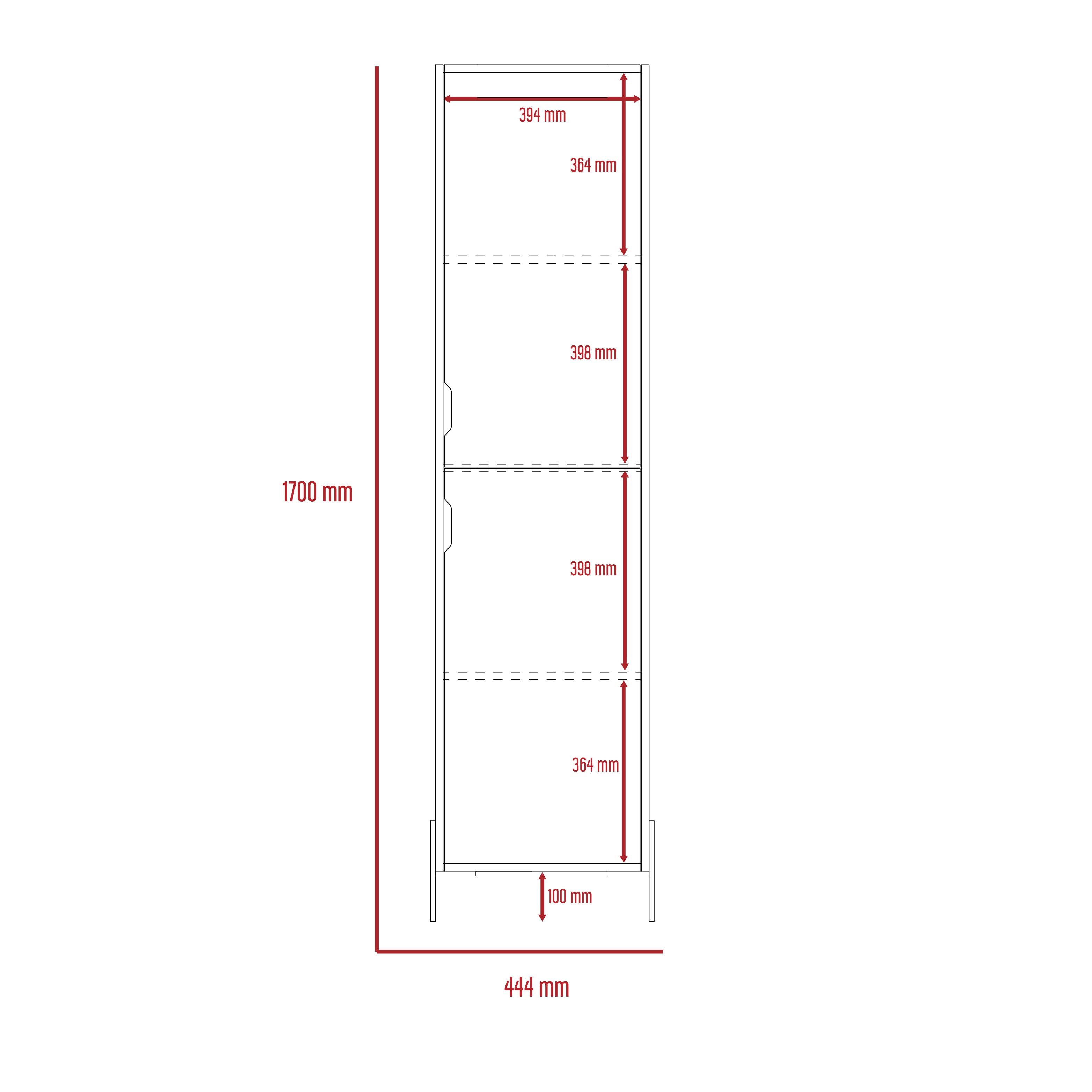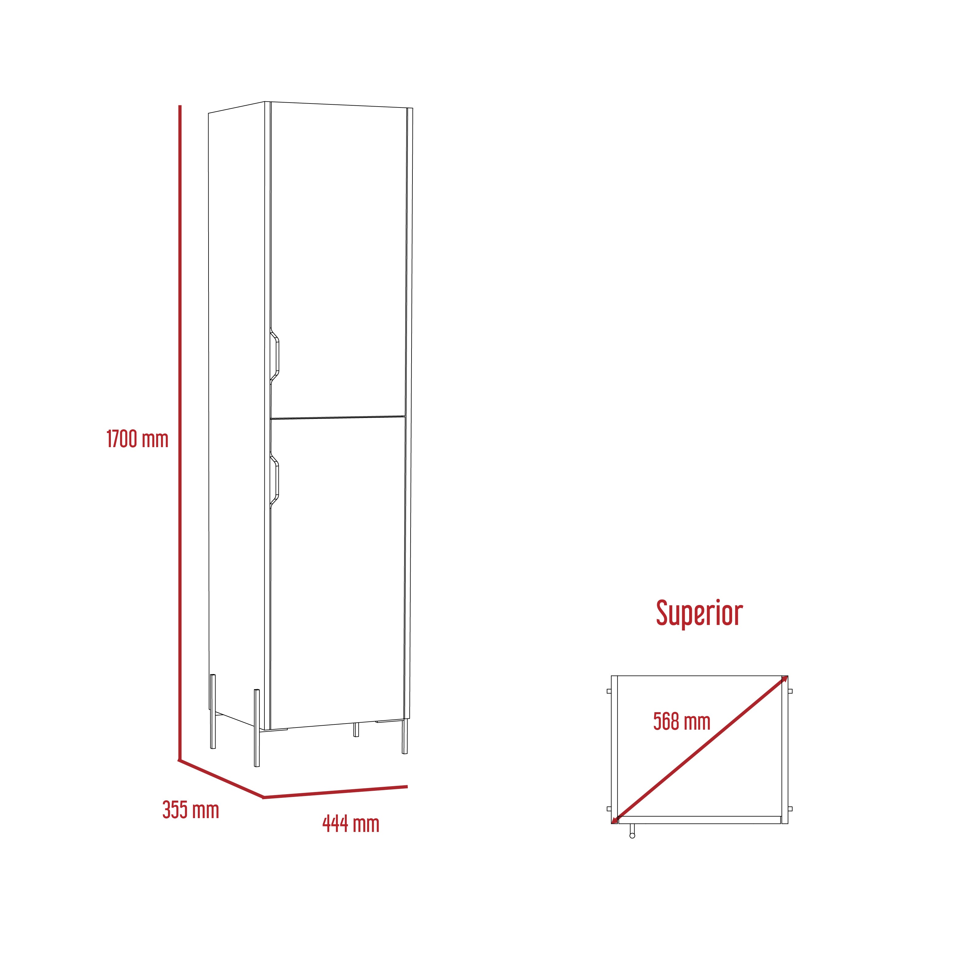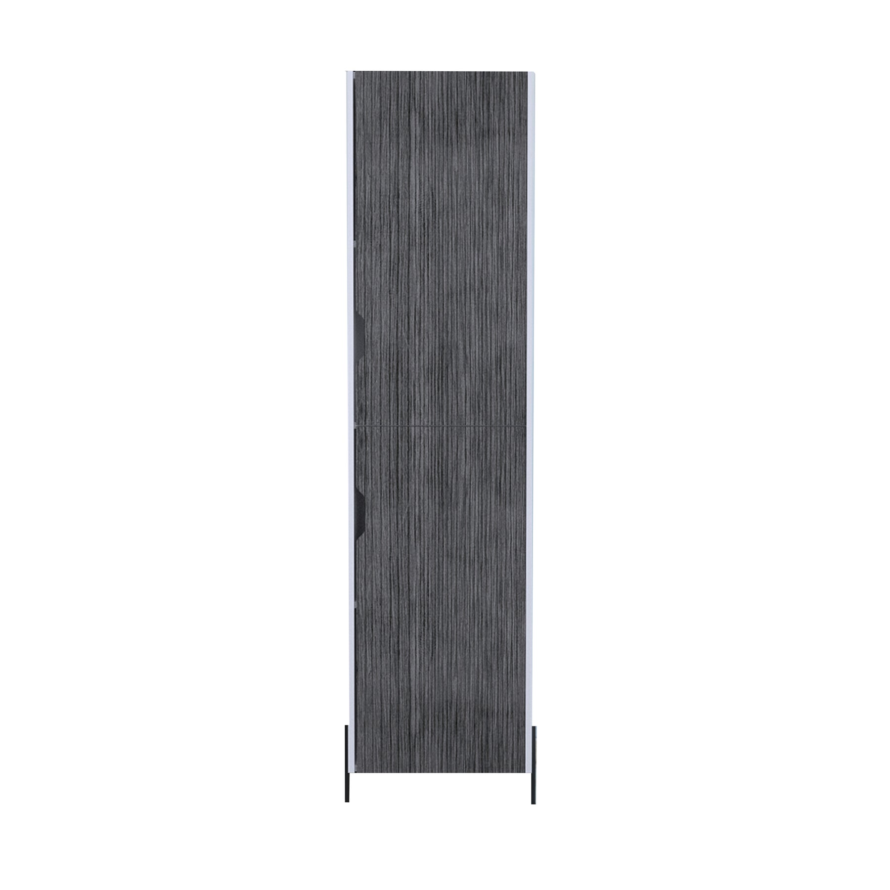 Useful tall storage cabinet which offers lots of useful shelf storage space with no clutter cut out handles. Made in an easy to clean, hardwearing white and carbon grey oak effect melamine finish with real metal hardware. W44.9 x D35.5 x H170 cm
