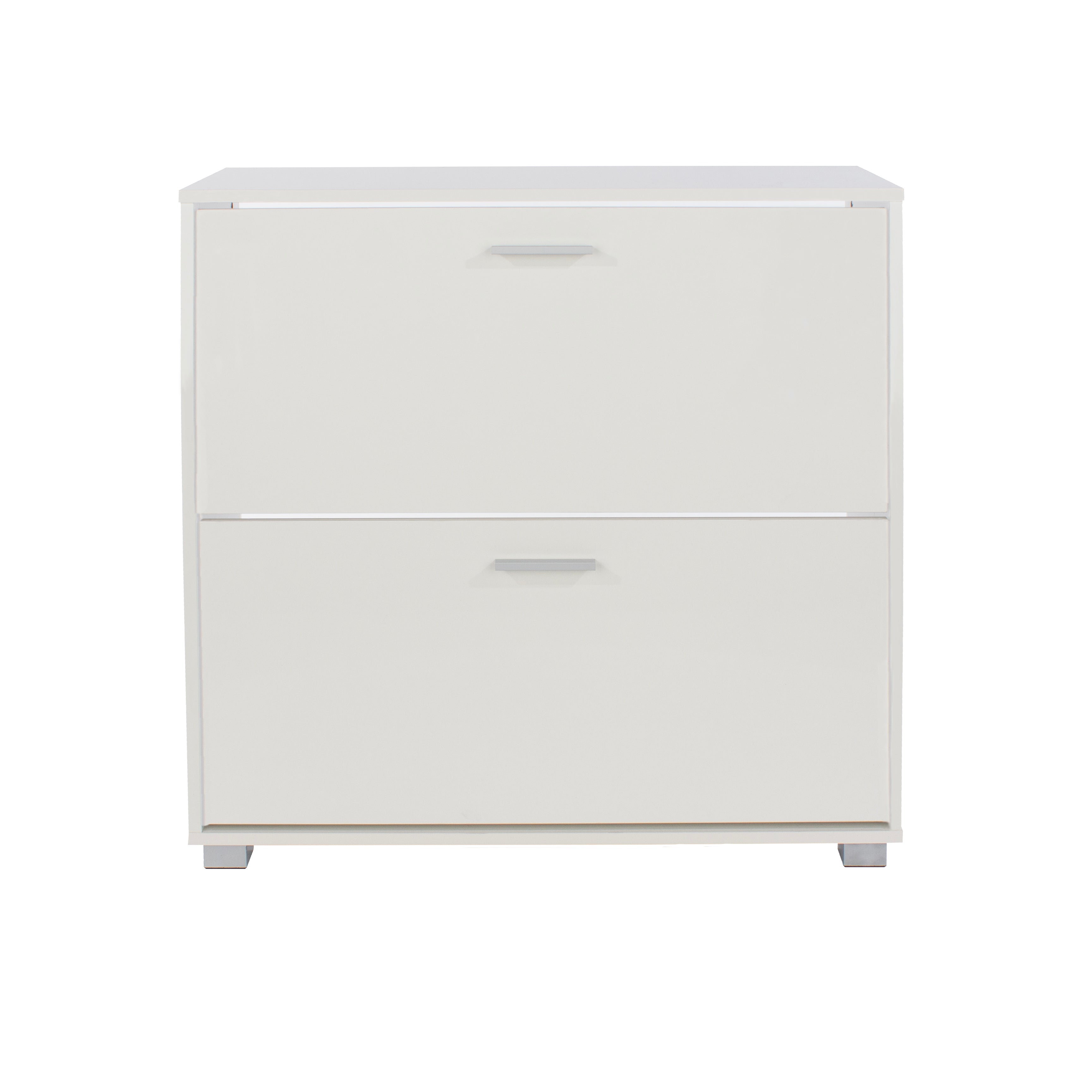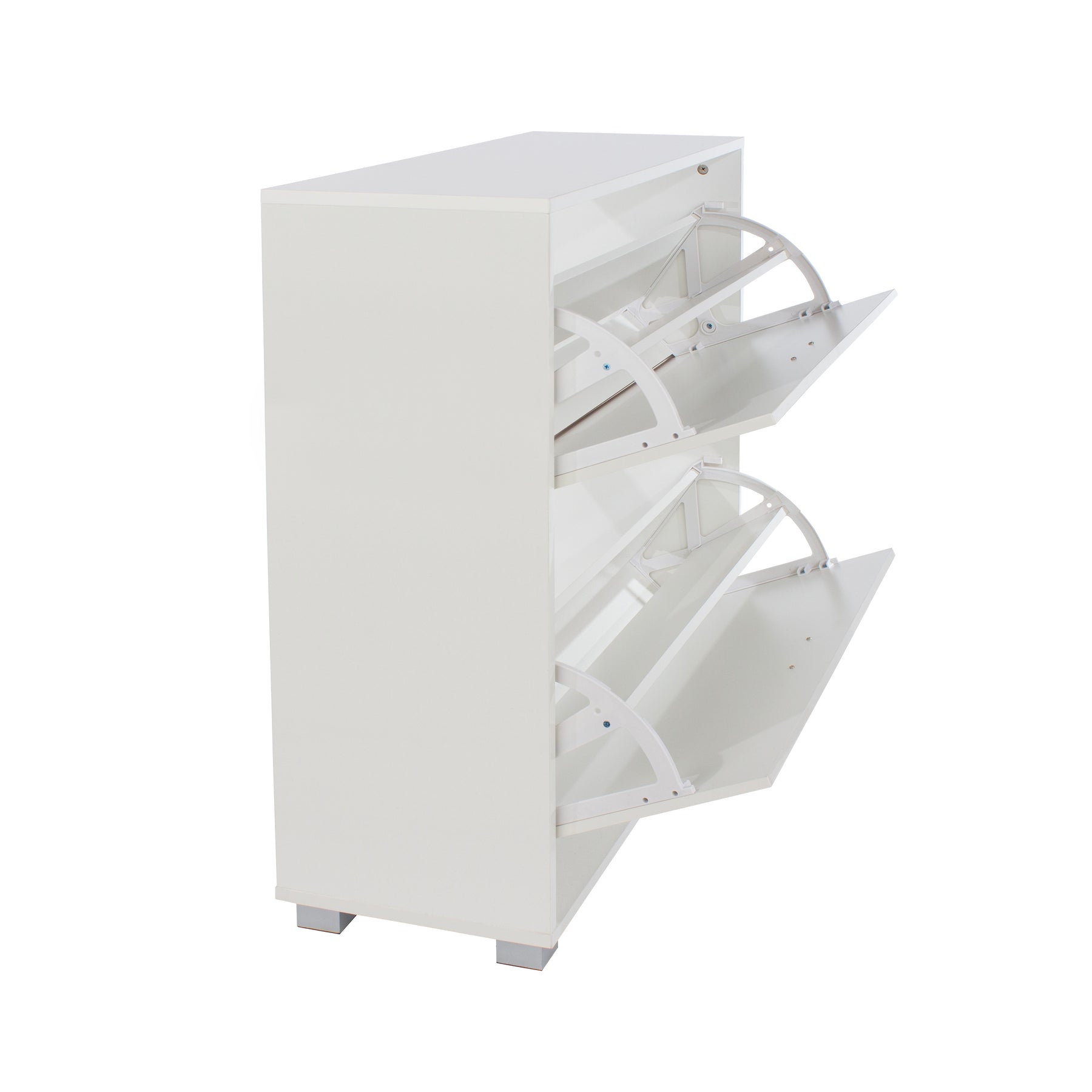 Ideal for hallways or bedrooms this is a great way to store slippers and shoes. Each drop down drawer front provides a double layered storage compartment for your footwear. It features a smooth gloss white film finish which is both hardwearing and easy to clean. W80 x D30 x H84 cm