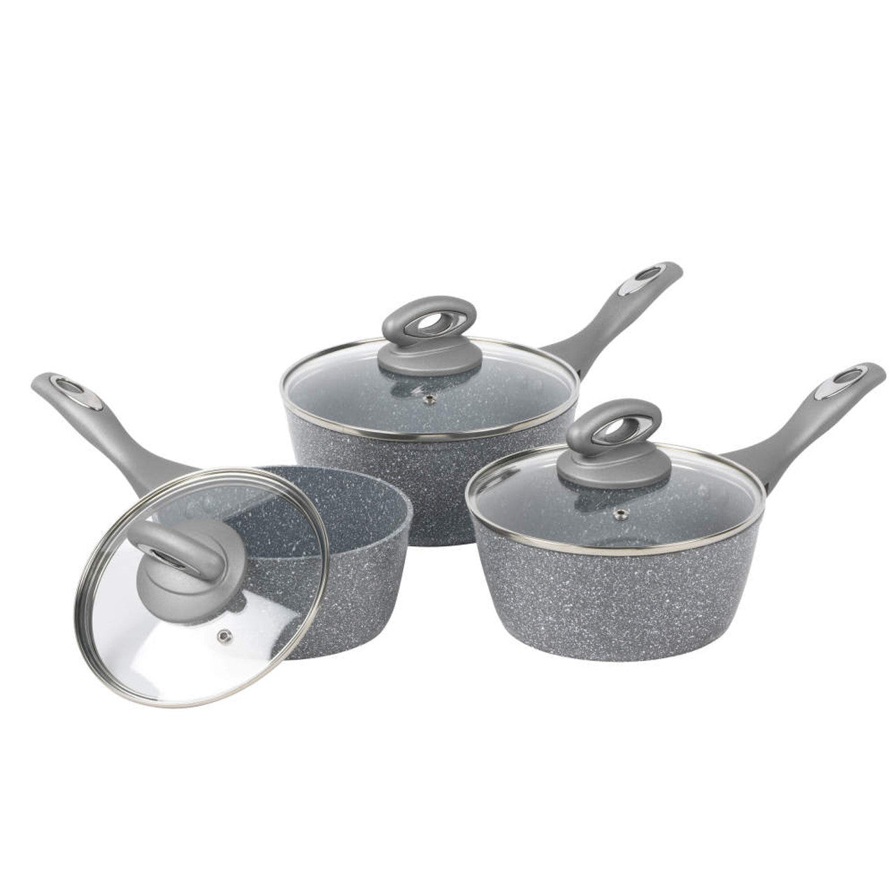 Salter Marblestone 3 Piece Saucepan Set – Non-Stick with Tempered Glass Lids